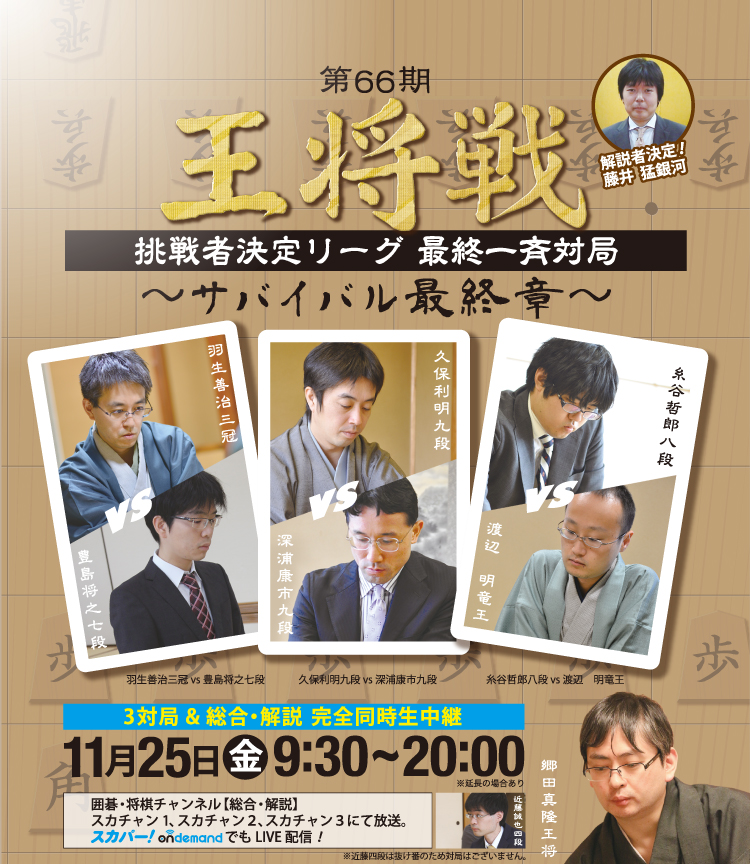 第66期 王将戦 挑戦者決定リーグ最終一斉対局 放送概要