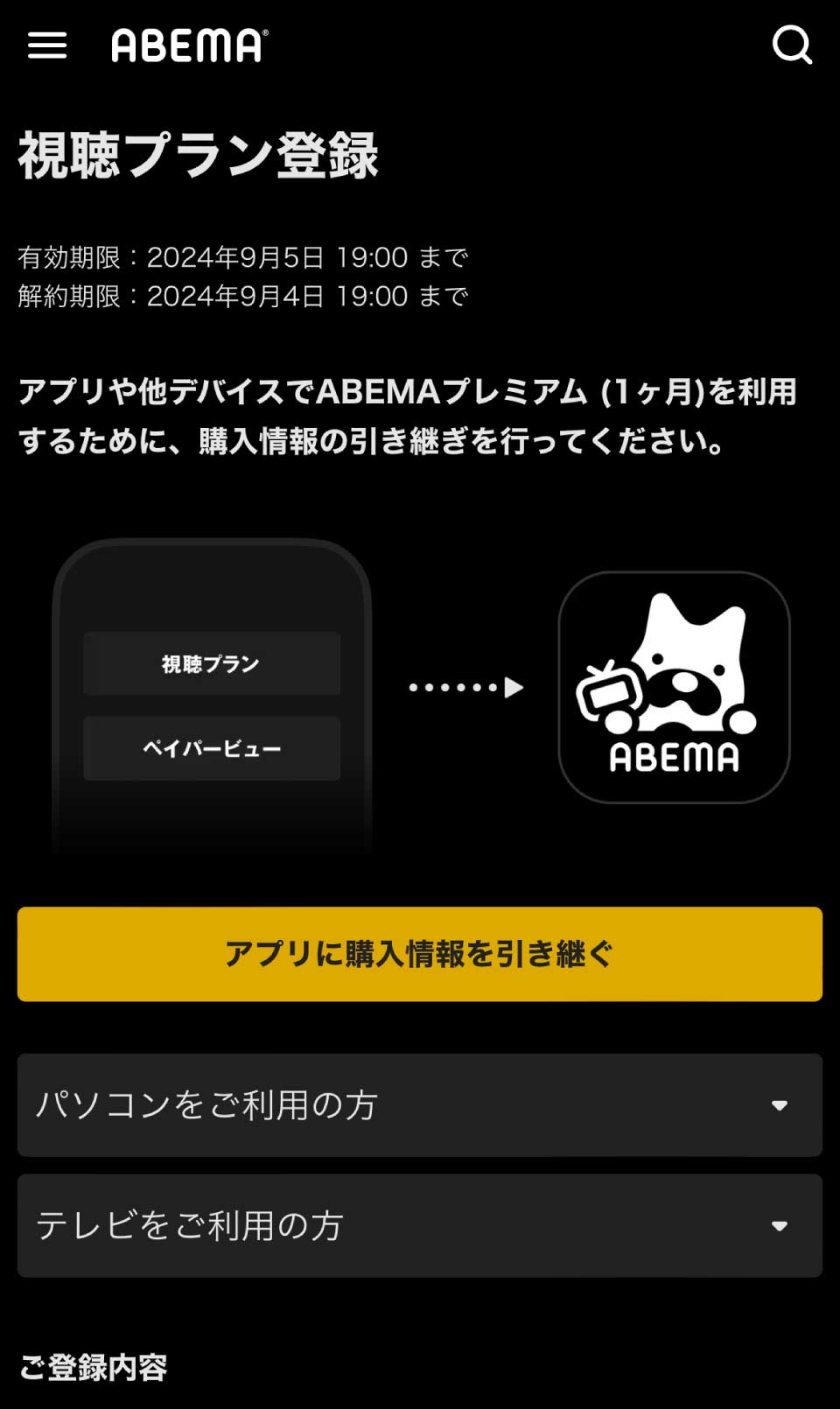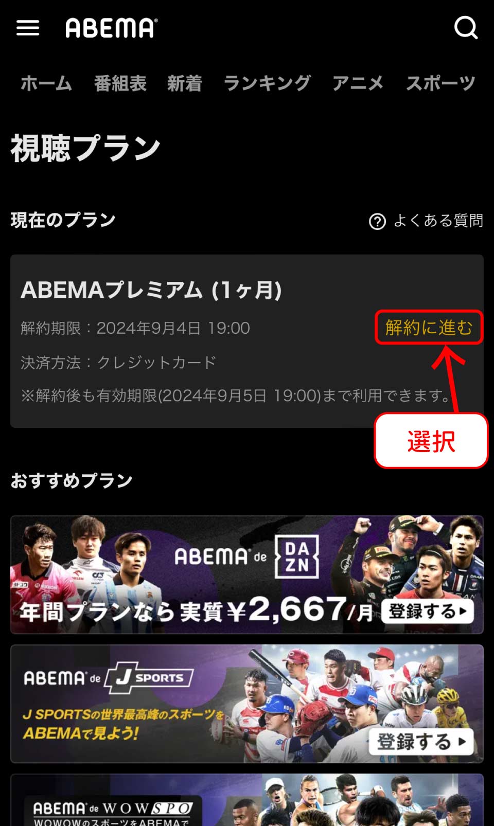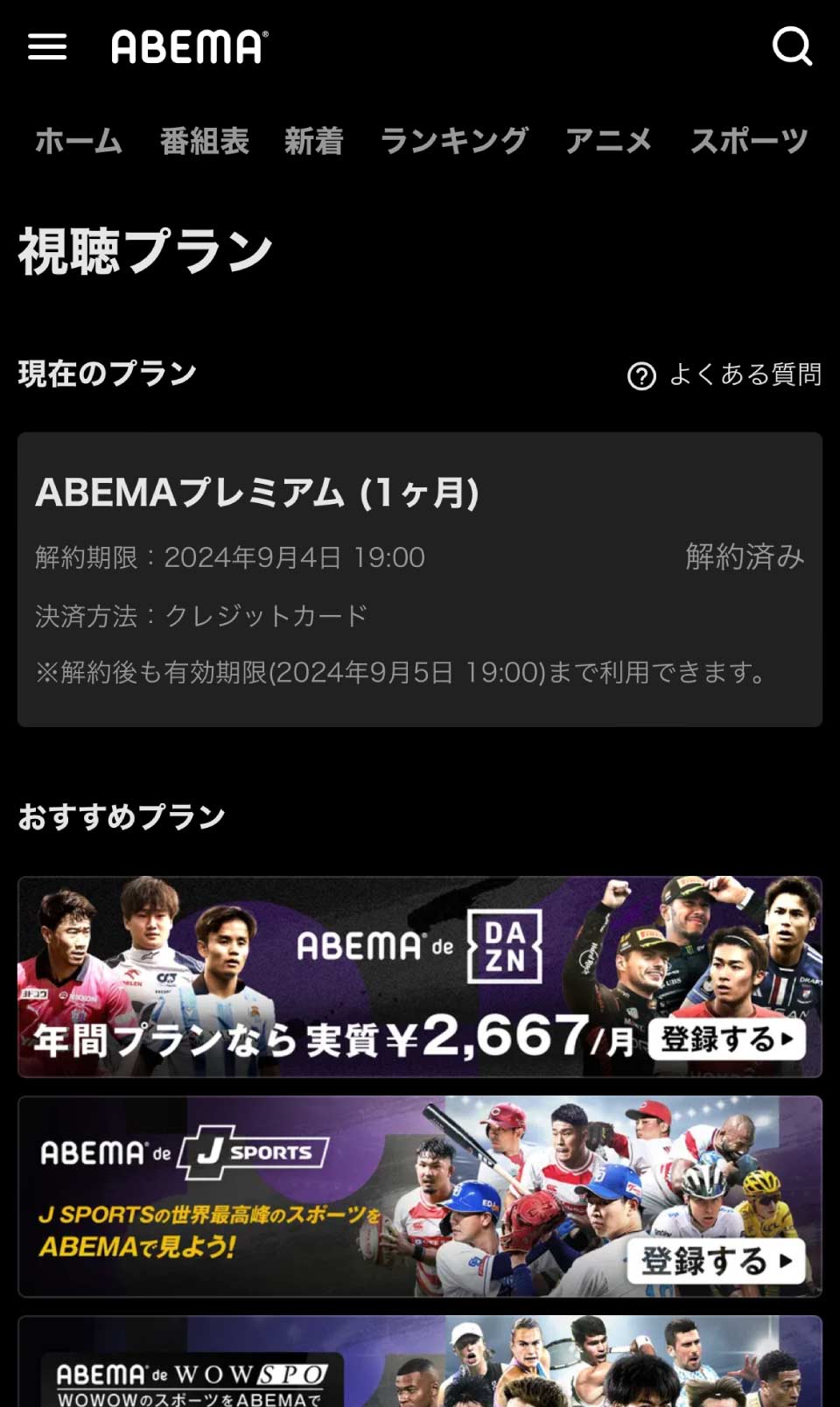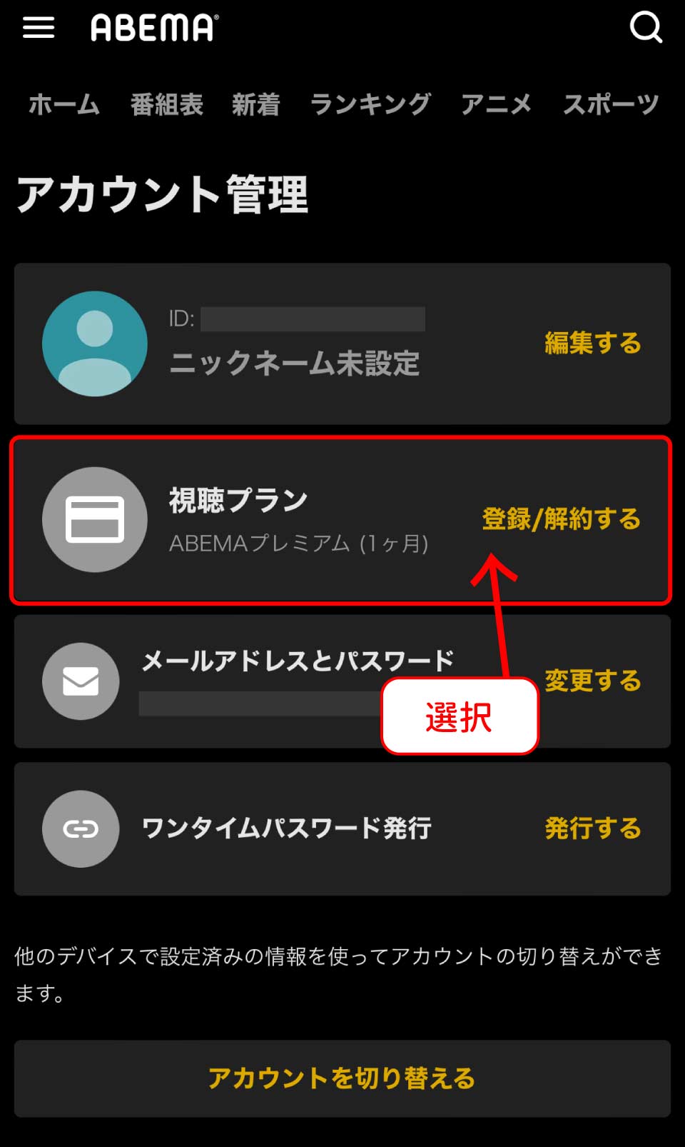 - 「視聴プラン」の「登録/解約する」ボタンを押します。