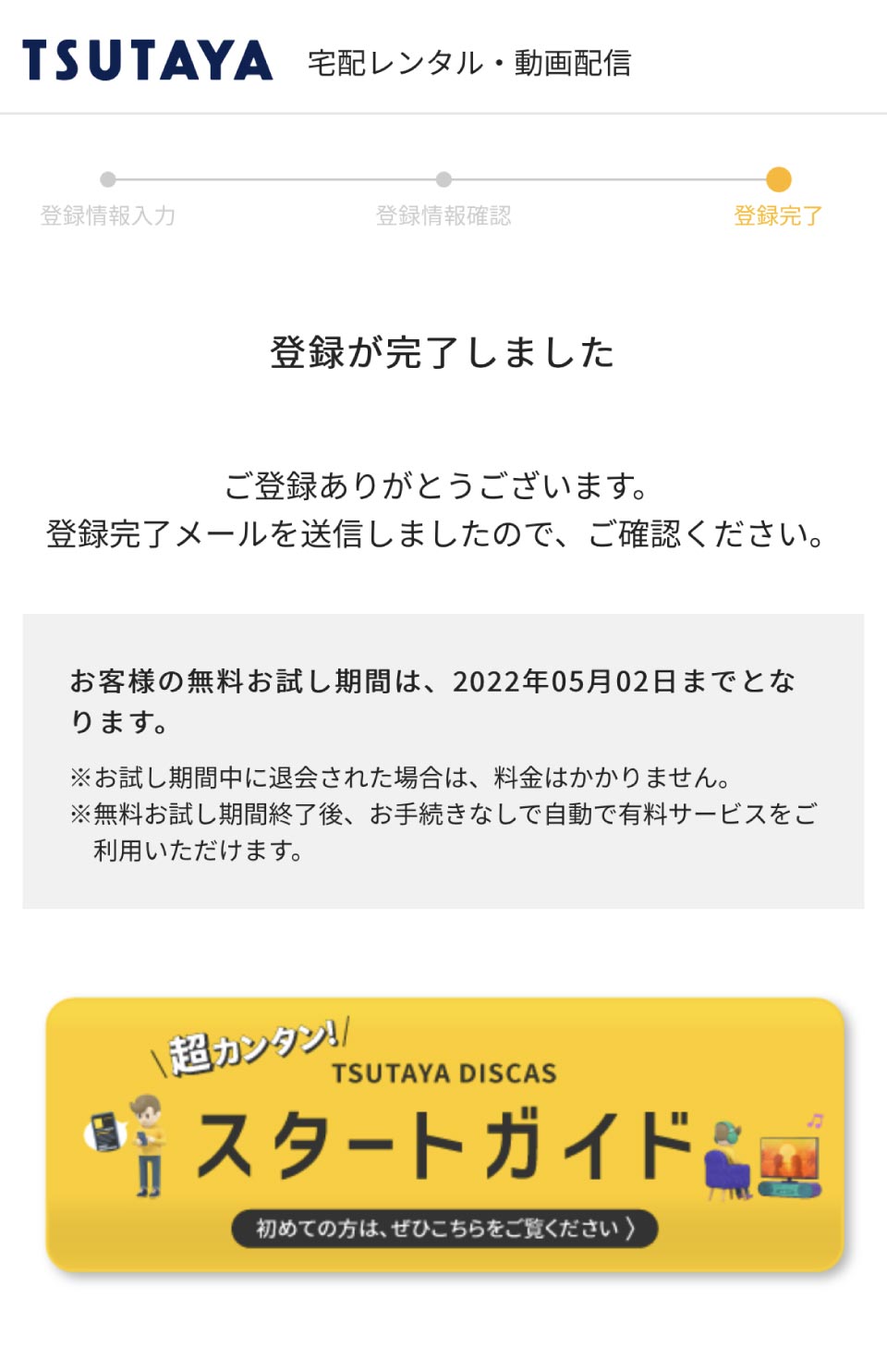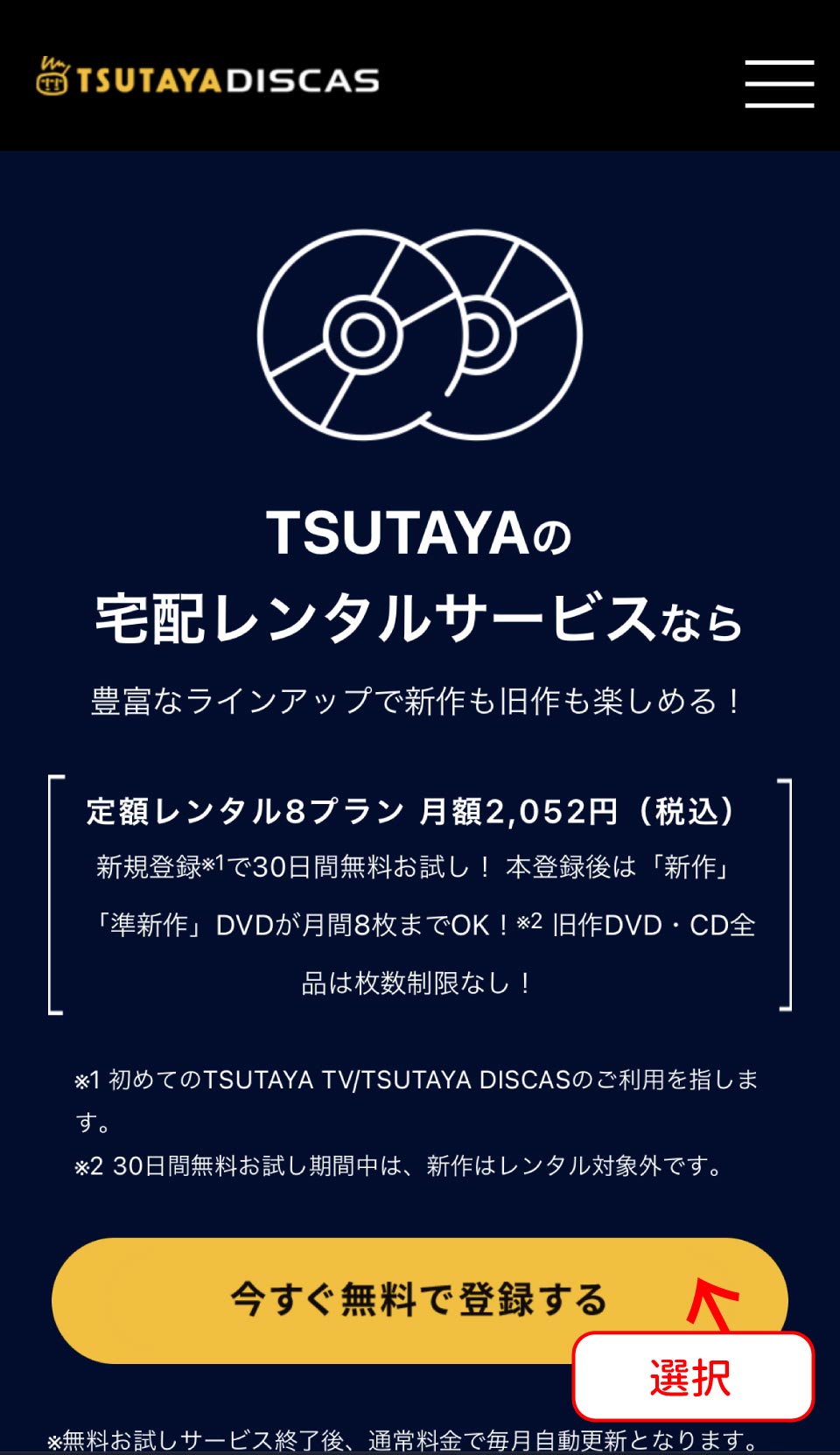 - TSUTAYA DISCASトップ画面の「今すぐ無料で登録する」をタップ