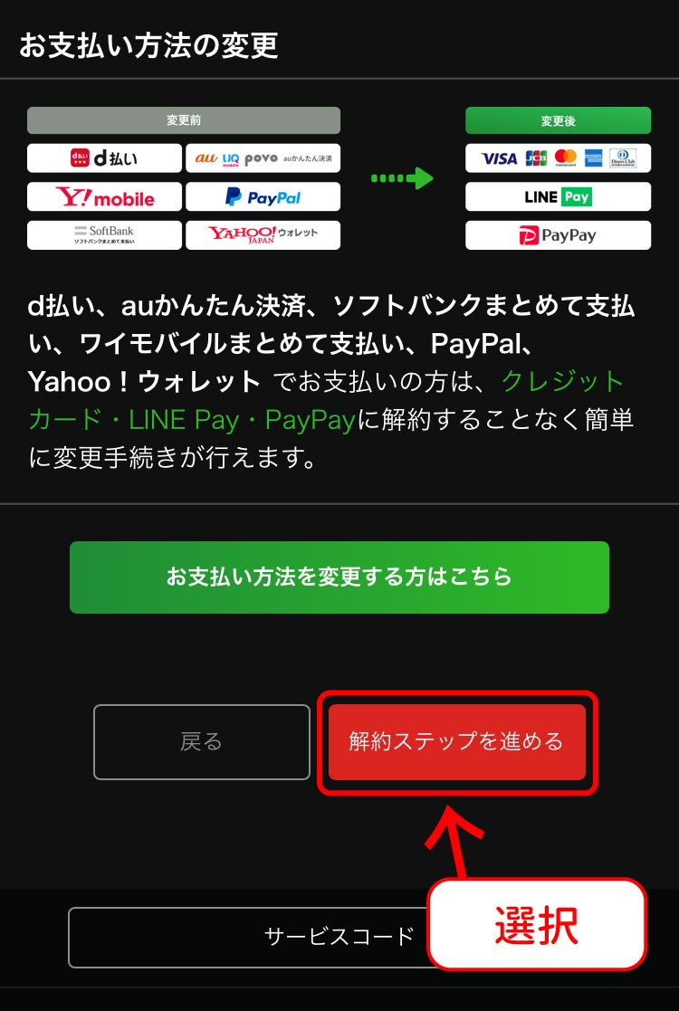 - 「解約ステップを進める」を選択してください。