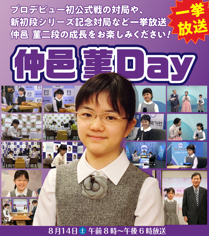 | 午前9時~ | 仲邑 菫二段 特別対局2 vsレジェンド・林 海峰名誉天元 |