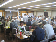 大会恒例の代表選抜戦決勝大盤解説。プロではなく大会主管の入間市囲碁連盟の名誉会長、日比光男さんによる解説というのがユニークです。白番の永松憲一(69)が6手目を天元に打つや、「天元に打って勝ったためしはない」と辛らつな日比節(?)が飛び出しましたが、結果はいかに。