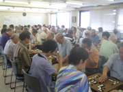 8月19日(日)、熊本市の日本棋院熊本県本部で「JCN熊本囲碁大会」が開かれました。この日の同市は朝から快晴で気温もぐんぐん上がり、大会には69名がご参加。午後から一転、一時的に大雨が降りましたが、皆さん窓の外の悪天候をよそに、盤上の世界に没入されていました。
