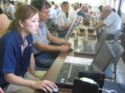 例年、会場には「パンダネット デモコーナー」が設けられます。今年は囲碁未体験のJCN熊本社員さんが、「パンダネット囲碁入門」にチャレンジ。お隣ではご参加のお一人がロボット相手にネット対局を楽しんでいらっしゃいましたが、時おりご親切にアドバイスされ、ほほえましい光景でした。