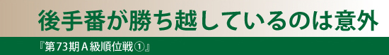 意外でした。順位戦の場合は抽選の段階で先後が決まっていますから、かなり作戦的なものは考えやすいです。それを考えると基本的には先手の方が有利なのかなという気がしているのですが、逆に言うと後手を持った時の方がいろいろ工夫をして、不利な部分を上手く跳ね返しているというところがあるのかなという印象ですね。ただ、それでもやはり意外でした。細かいことではあるのですが、A級は全部で9局あって、抽選で先手番が5局なのか後手番が5局なのかは誰でも結構気にしている所ではあるので、そういう意味ではこの結果は結構意外でした。 |