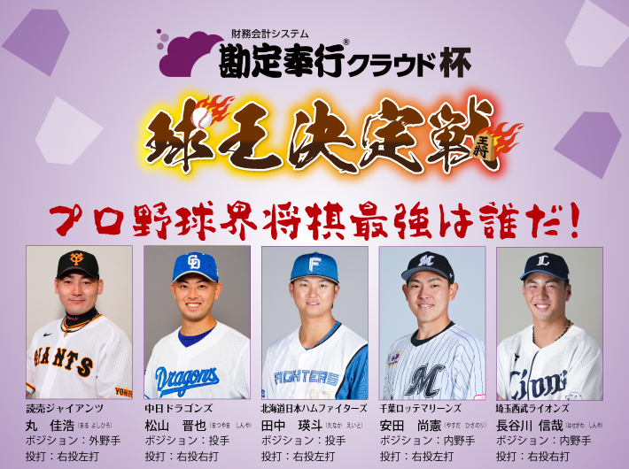 球界の将棋早指し王を決める特番、4時間生放送! 安田尚憲(千葉ロッテマリーンズ)ら将棋好きのプロ野球選手たちが、得意戦法を駆使して盤上狭しと大暴れする。球王の栄冠は誰に輝くのか !? その他、優勝者とプロ棋士の対決、ざっくばらんなトークコーナーなど楽しい企画が盛りだくさん。将棋界を代表する野球ファンの渡辺 明九段、室谷由紀女流三段が番組を盛り上げます!