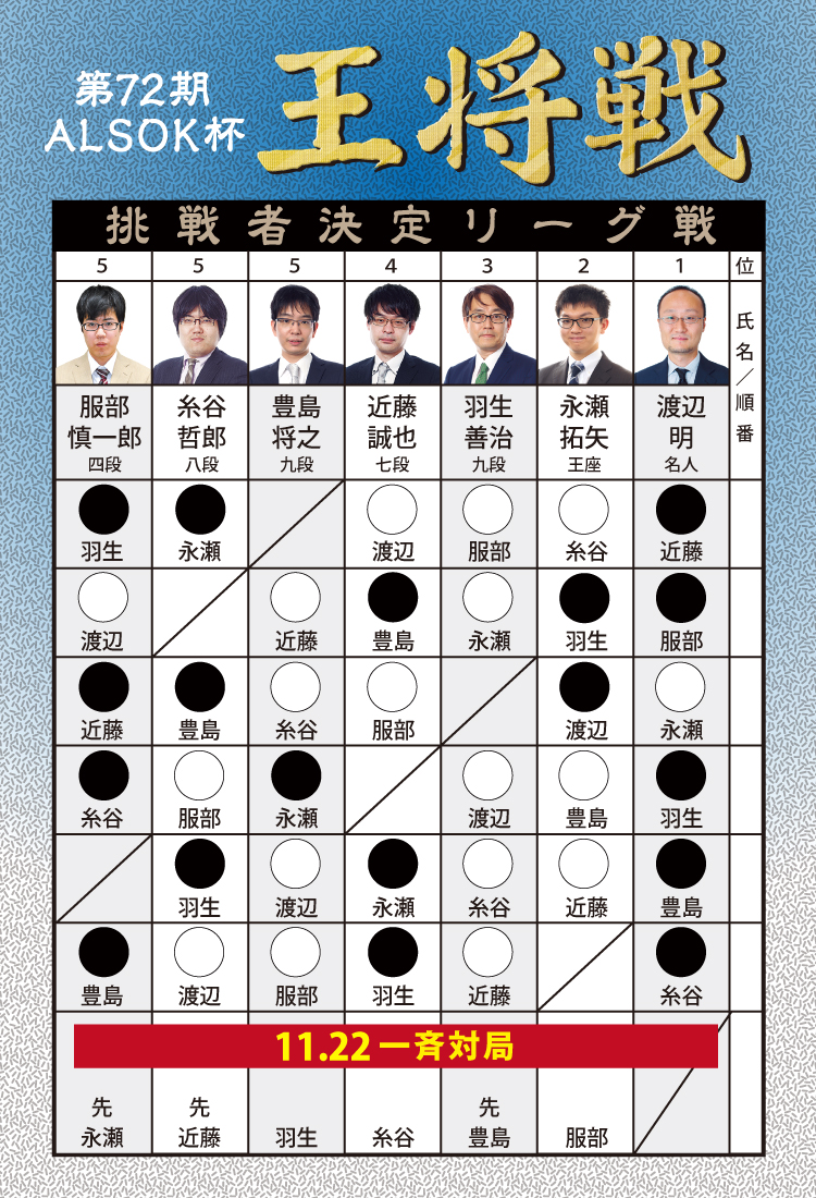 ホーム / 将棋 / 第72期 ALSOK杯王将戦 挑戦者決定リーグ戦