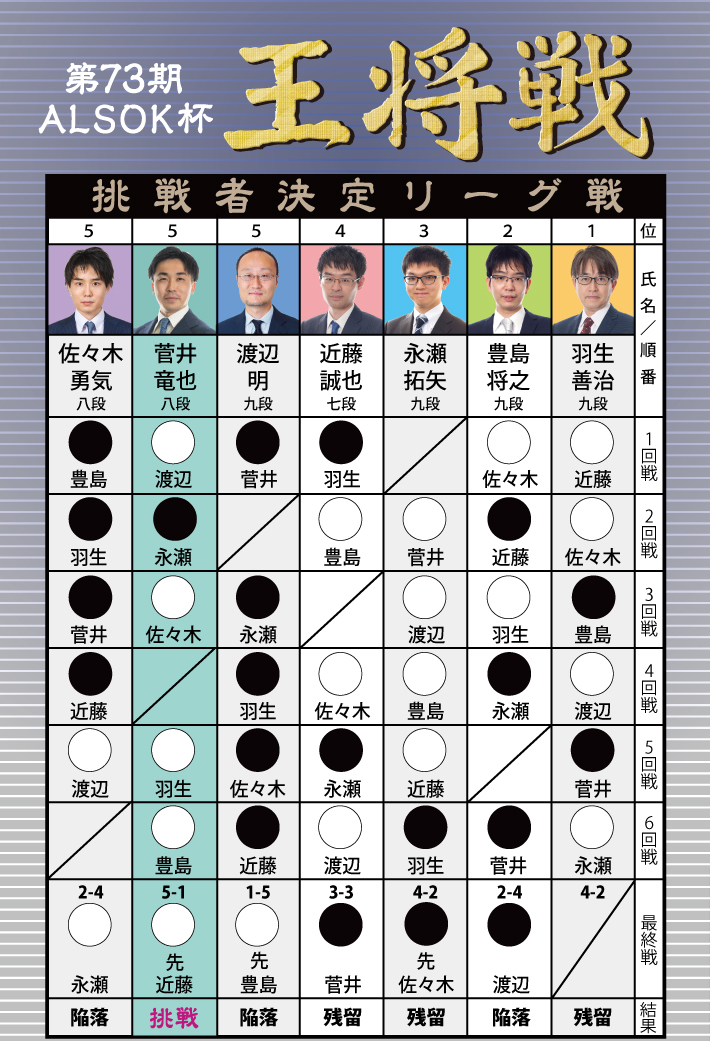 ホーム / 将棋 / 第73期 ALSOK杯王将戦 挑戦者決定リーグ戦