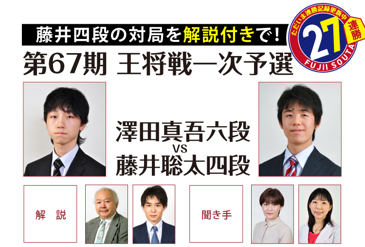ホーム > 将棋 > 将棋スペシャル >生放送「第67期 王将戦 一次予選 澤田真吾六段 vs 藤井聡太四段」