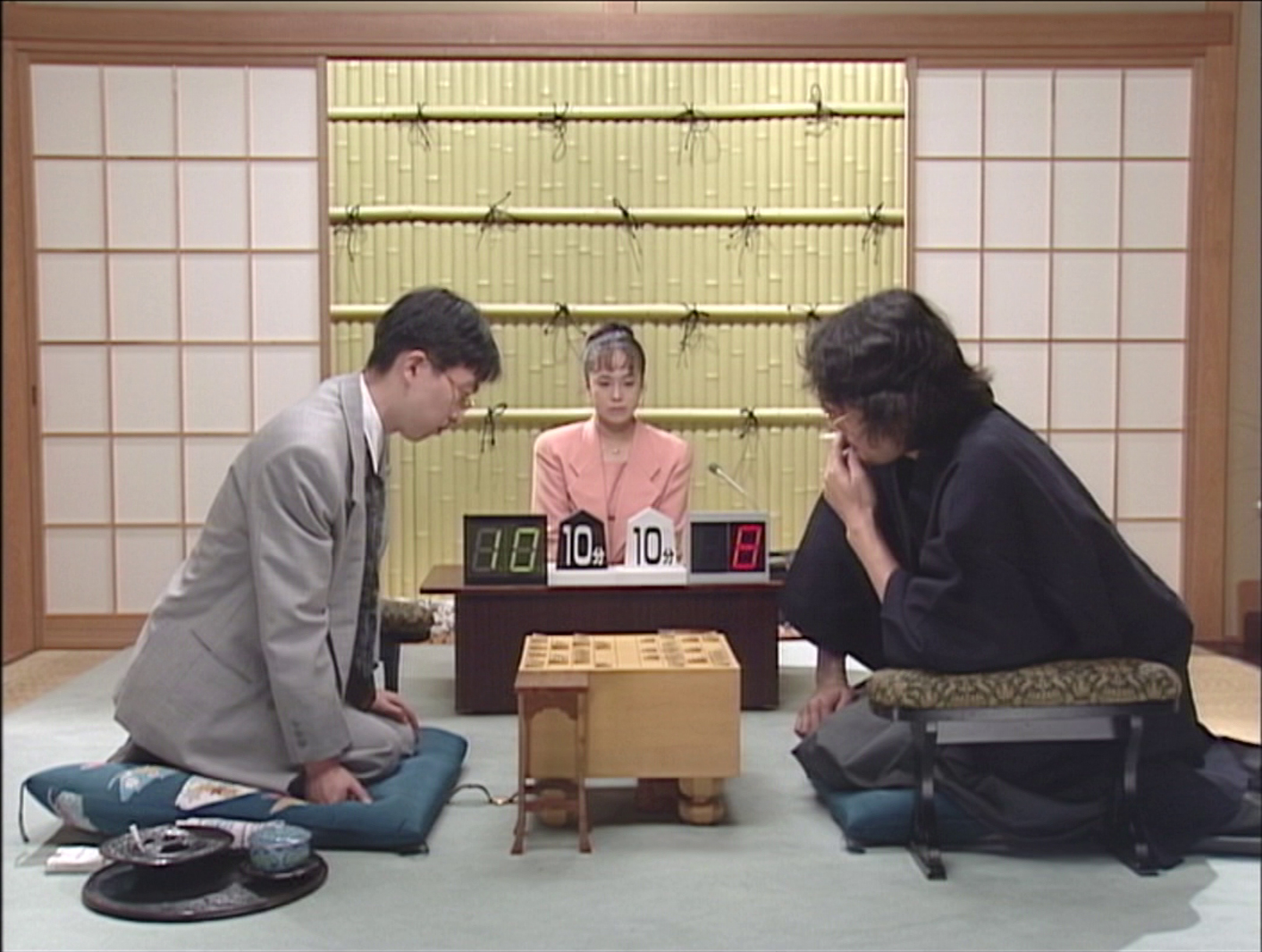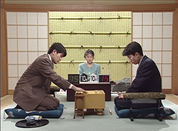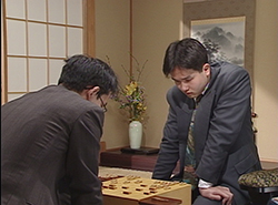 本戦Aブロック 最終戦 羽生善治名人 vs 田中寅彦八段 対局日:1994年7月12日 対局当時:羽生23歳、田中37歳タイトルホルダーでありながら、銀河戦ではまだ優勝のない羽生。本局は、序盤の戦術に長け「序盤のエジソン」という異名をもつ田中との対局。相矢倉の将棋は、羽生の疑問手から田中優勢に。第3期はブロック最終戦で消えることとなる。 |