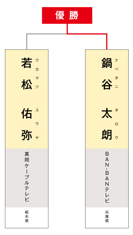 鍋谷太朗さんが若松佑弥さんを下し、優勝を果たした。