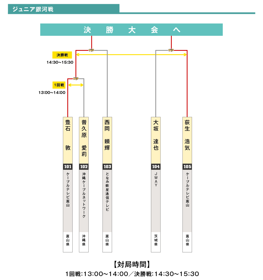 「アマチュア銀河戦」には11名が、「ジュニア銀河戦」には5名が出場。前者を勝ち抜いた3名が11月21日(土)の『第5回将棋アマチュア銀河戦』決勝大会に、また後者を勝ち抜いた2名が同日の『第5回将棋ジュニア銀河戦』決勝大会に進出となりました。