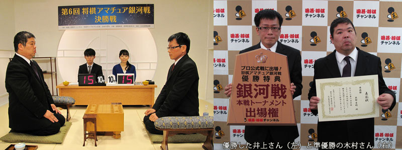 「ケーブルテレビ杯ネット将棋選手権大会」「ひかりTV杯ネット将棋選手権大会」の優勝者2名による「第6回将棋アマチュア銀河戦」の決勝戦が、11月19日(土)囲碁・将棋チャンネル「銀河スタジオ」にて行われました。