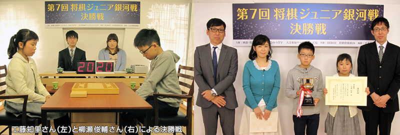 「ケーブルテレビ杯ネット将棋選手権大会」「ひかりTV杯ネット将棋選手権大会」の優勝者2名による「第7回将棋ジュニア銀河戦」の決勝戦が、11月18日(土)囲碁・将棋チャンネルスタジオにて行われました。