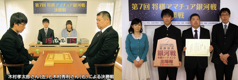 「ケーブルテレビ杯ネット将棋選手権大会」「ひかりTV杯ネット将棋選手権大会」の優勝者2名による「第7回将棋アマチュア銀河戦」の決勝戦が、11月18日(土)囲碁・将棋チャンネルスタジオにて行われました。