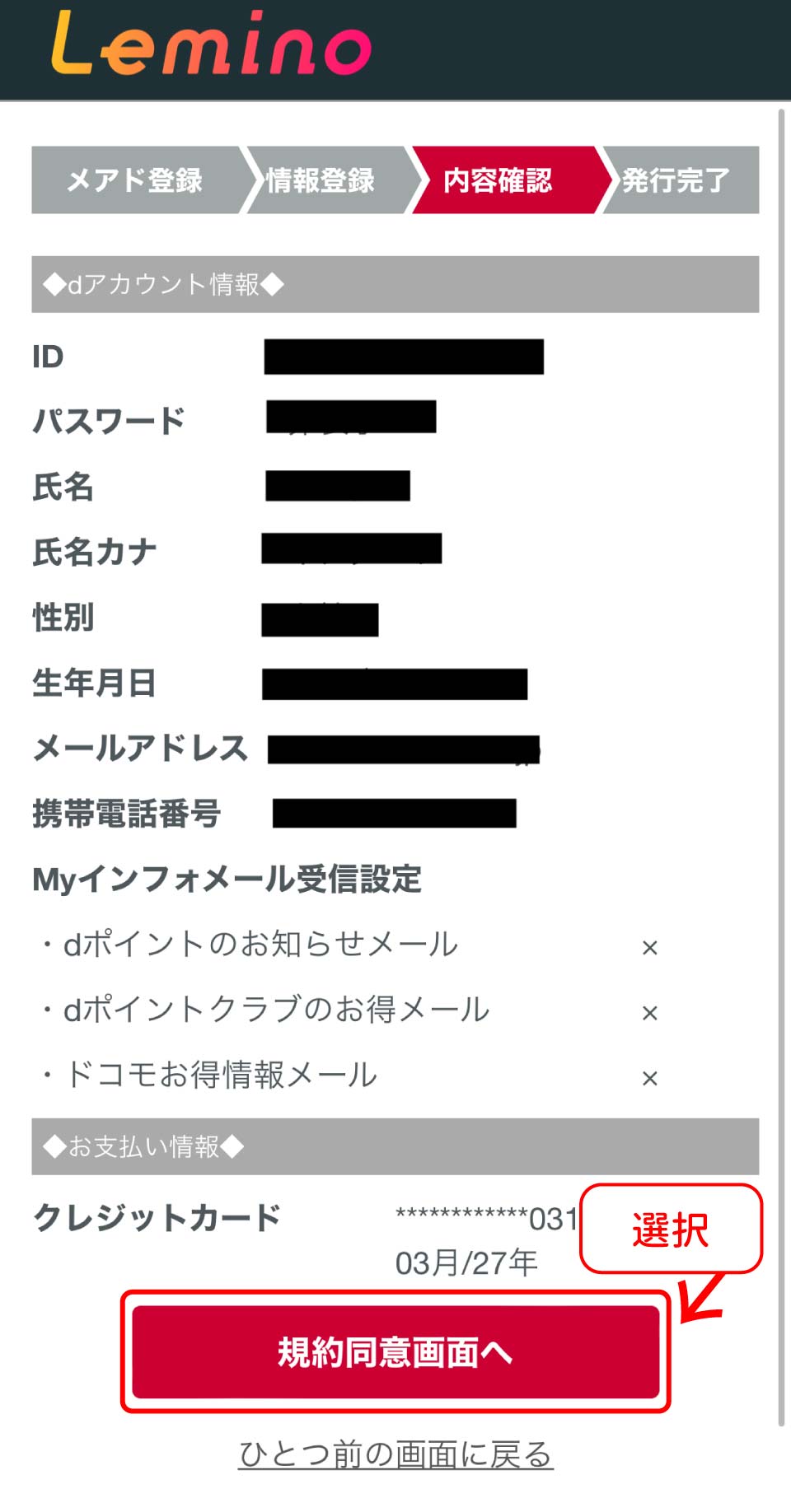 12. 情報を確認し、「規約同意画面へ」をクリック