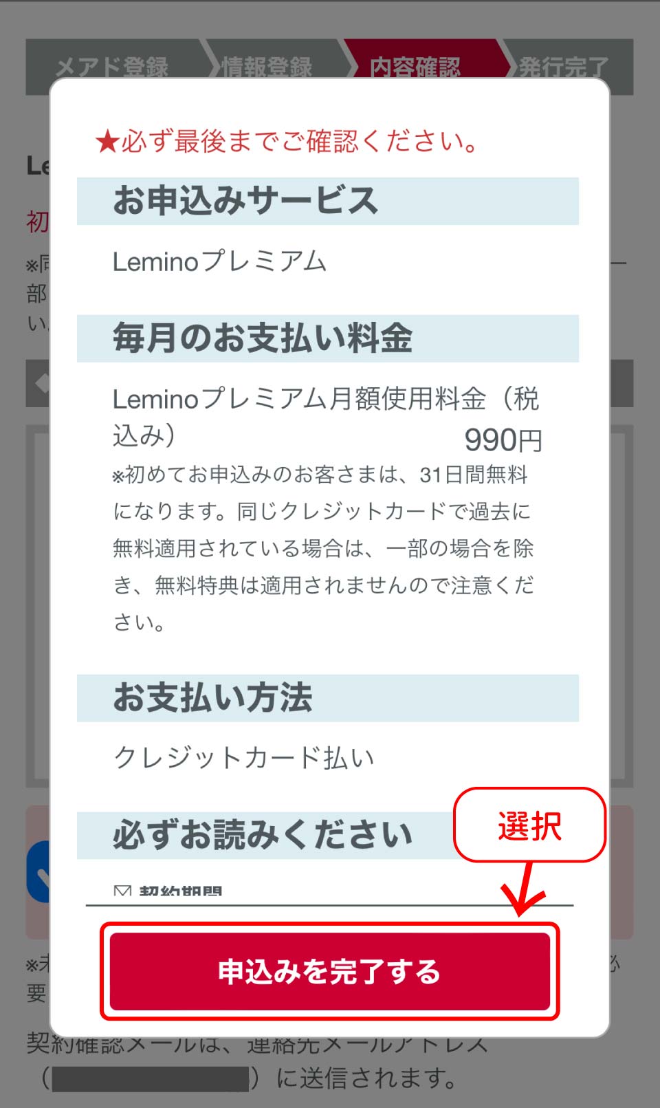 14. 申込内容を確認し、「申込内容を完了する」を選択