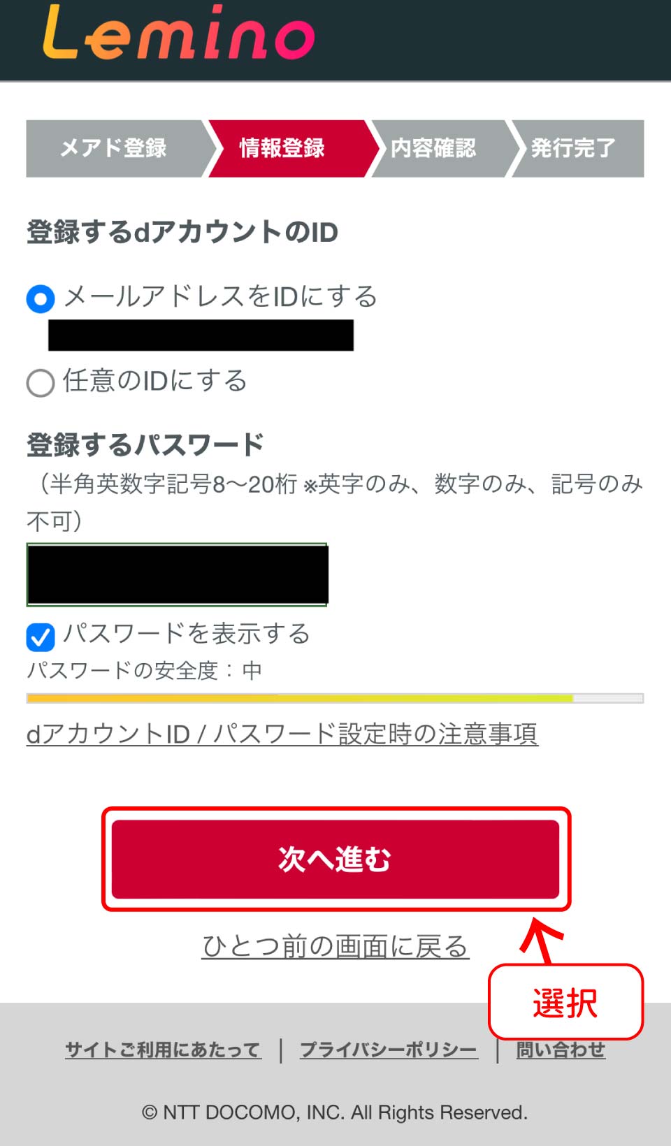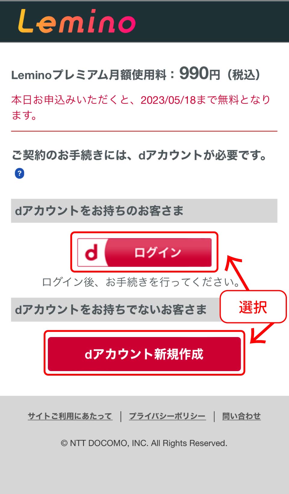 dアカウントをお待ちでない場合は、「dアカウント新規作成」を選択