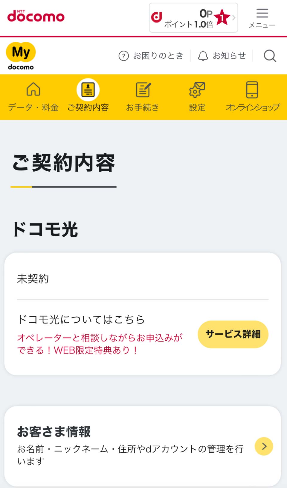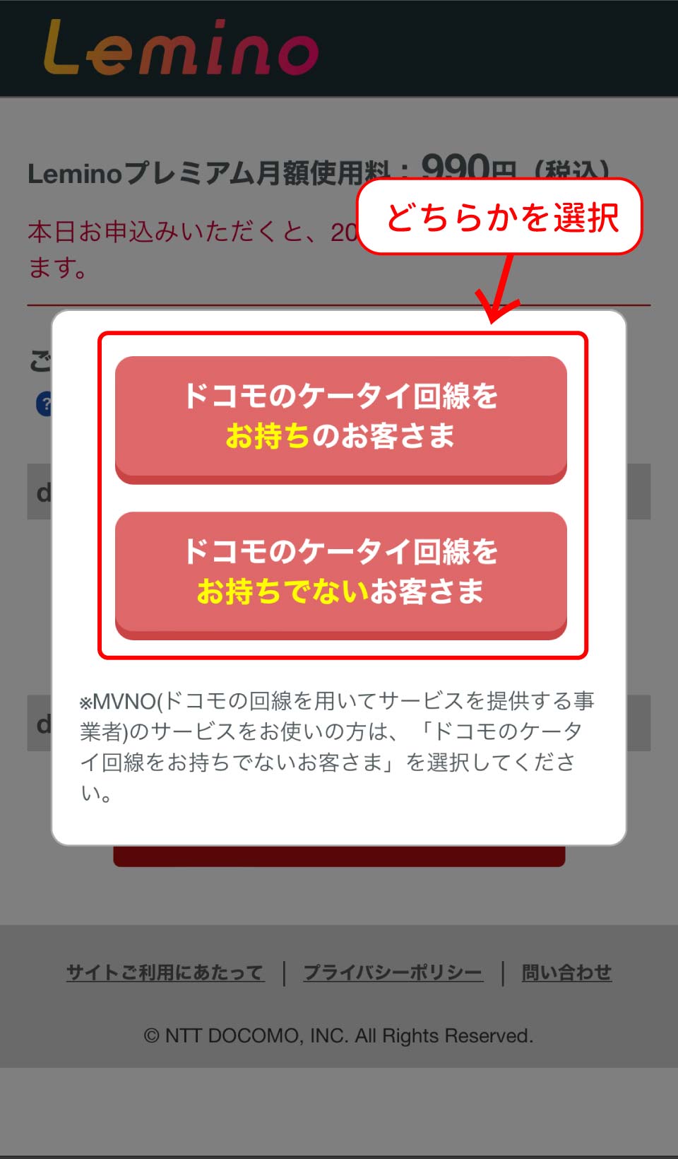 3. ドコモのケータイ回線について該当するボタンをクリック