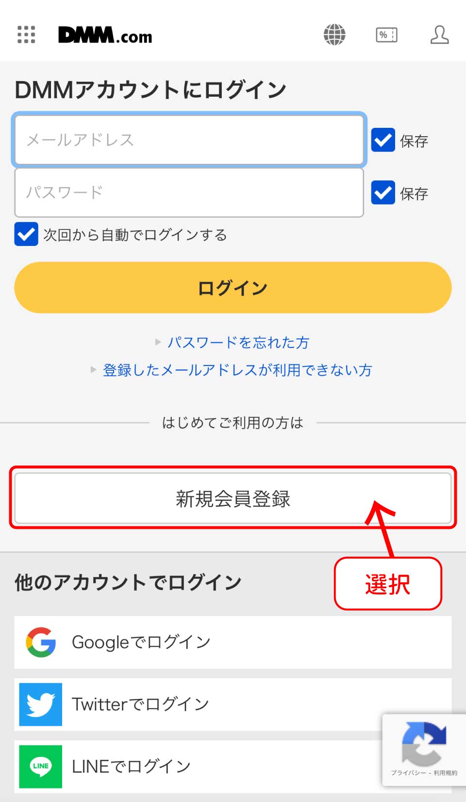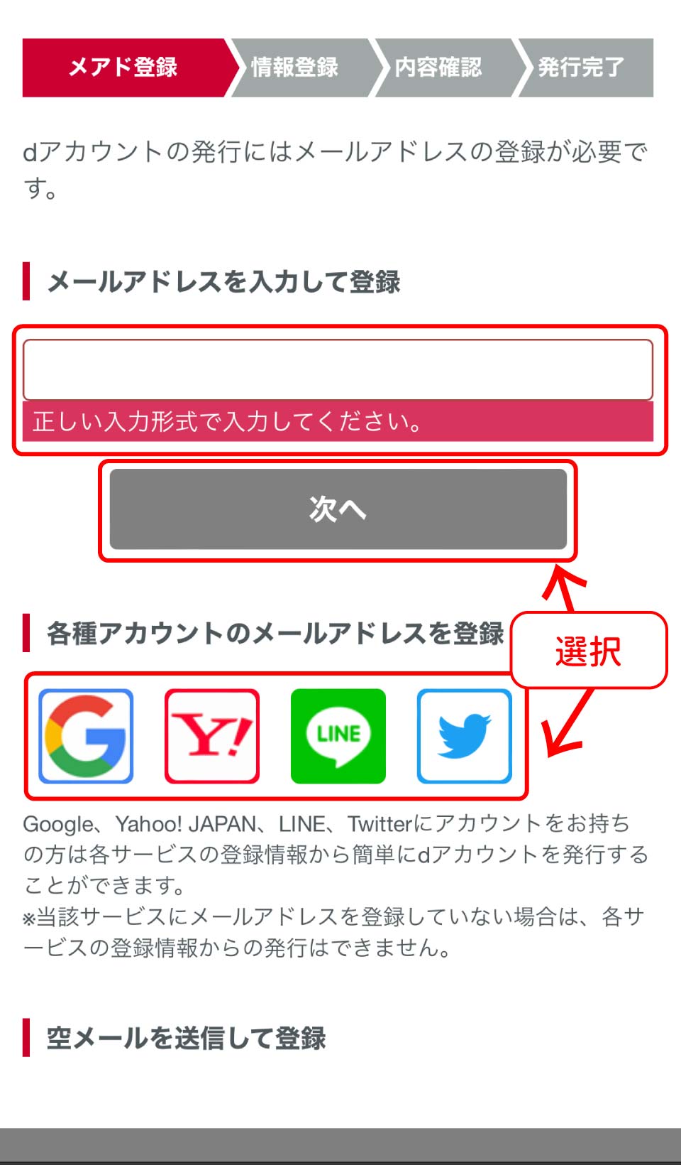 または、各種アカウントのメールアドレスを登録する場合は、お持ちのアカウントを選択
