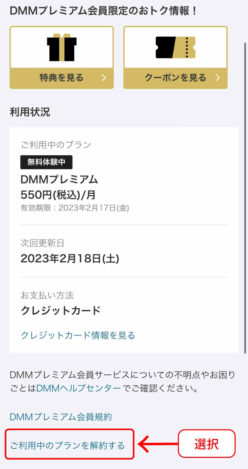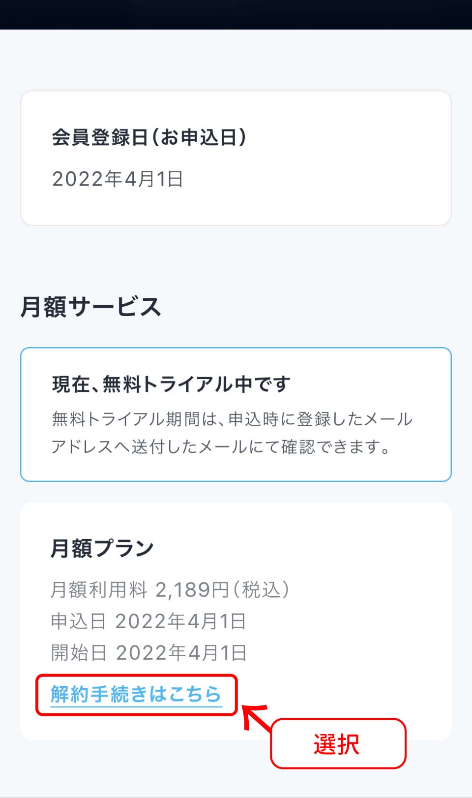 4. 月額サービスの下にある「解約手続きはこちら」を選択してください。