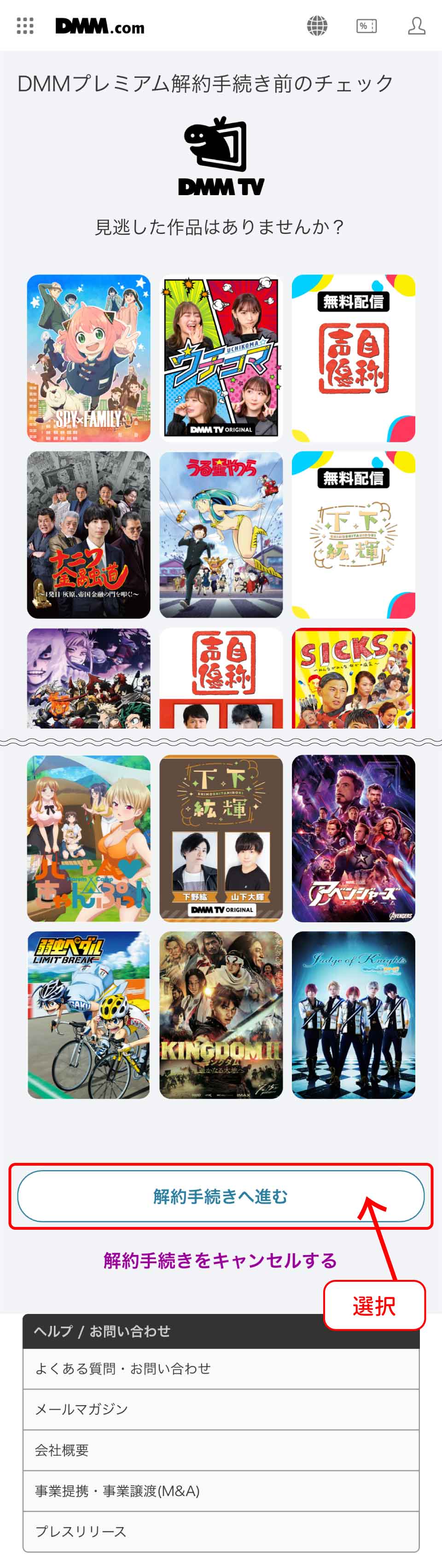 4. 下の方にスクロールし、「解約手続きへ進む」を選択してください。