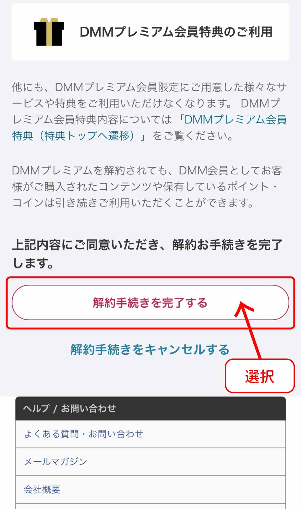 6. 「解約手続きを完了する」を選択して、解約手続き完了です。