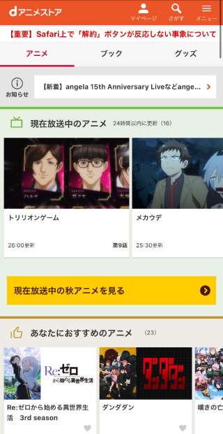 - dアニメストアのサイトTOPページを表示させます。